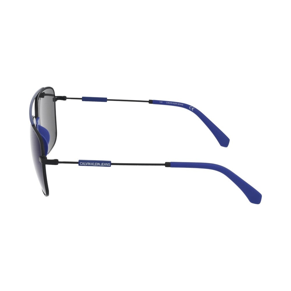 Calvin Klein Jeans – Black Full Rim Metallic Frame, Blue Lenses & Temple Ends. Contemporary.