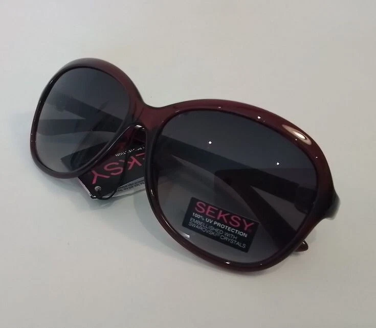 These distinctive and stylish ladies sunglasses come in a transparent burgundy Acetate frame with the ‘Look Good & Feel Great’ Swarovski Crystals detail.